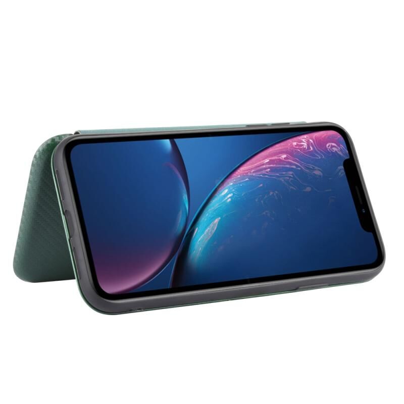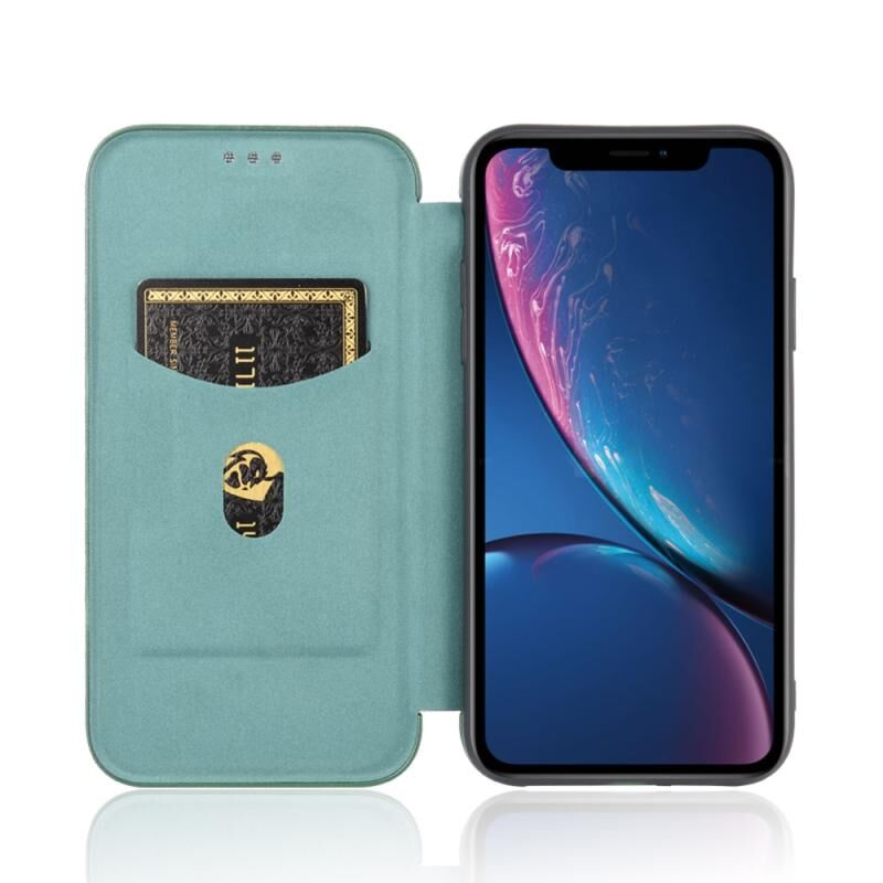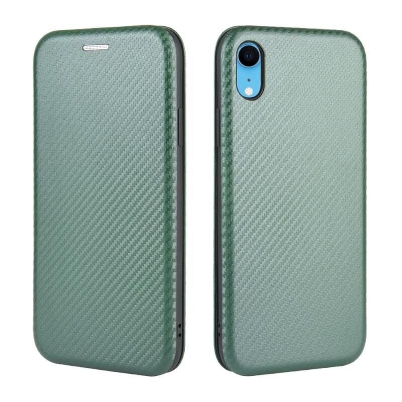 For iPhone XR Carbon Fiber Texture Horizontal Flip TPU + PC + PU Leather Case with Card Slot(Green)