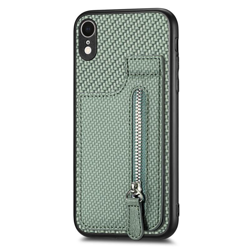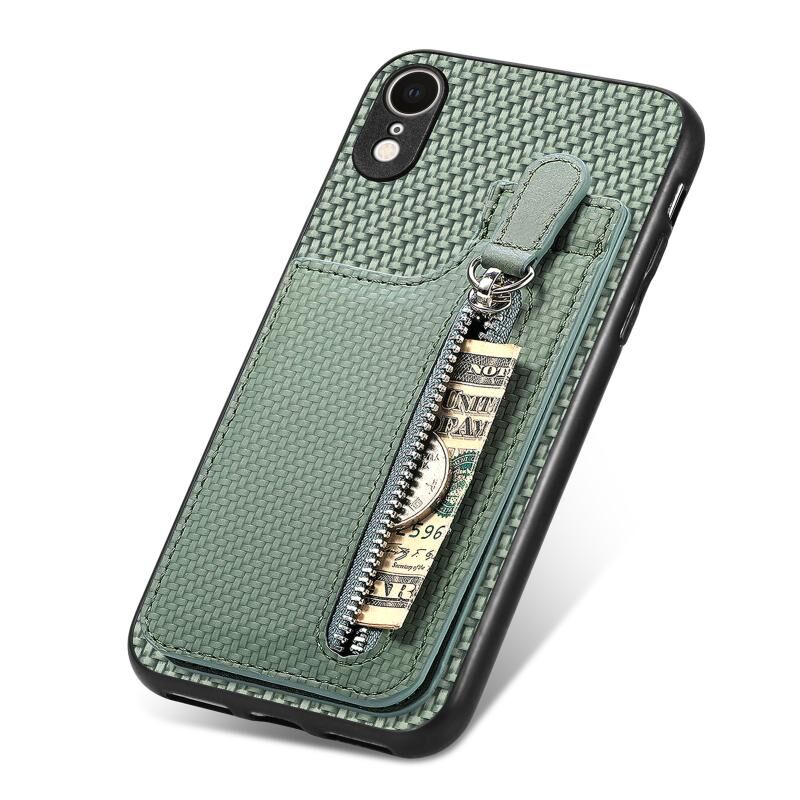 Θήκη τηλεφώνου με κάθετη αναδίπλωση και φερμουάρ από ανθρακονήματα για iPhone XR (Μαύρο)