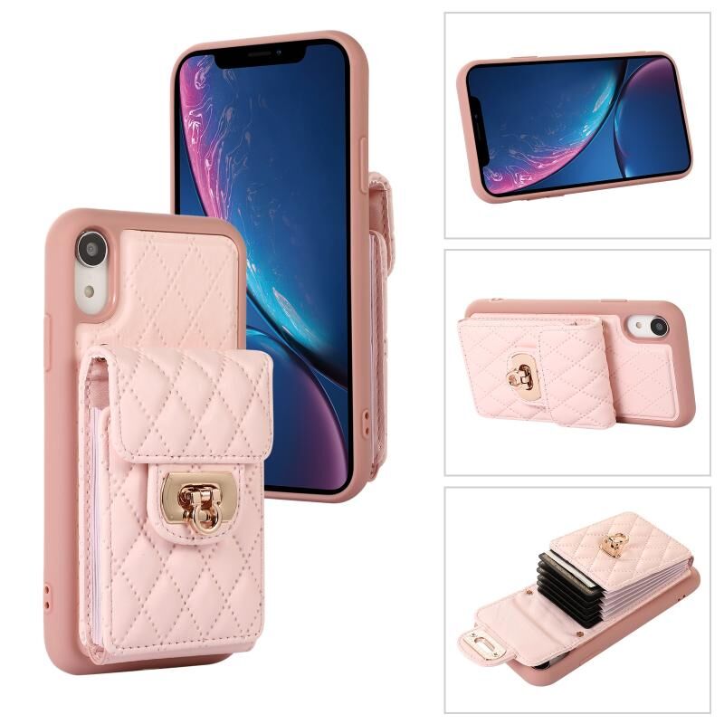 Θήκη τηλεφώνου από δέρμα με θήκη για κάρτες για iPhone XR (ρόζ)