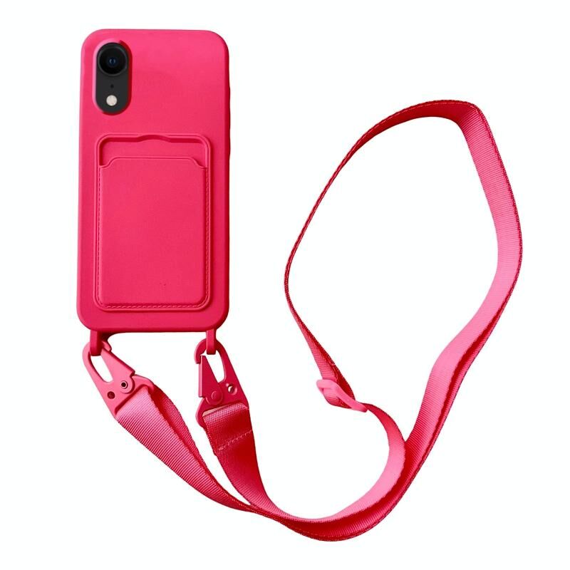 Θήκη για iPhone XR με θήκη κάρτας, υγρή σιλικόνη με κορδόνι (Μαύρο)