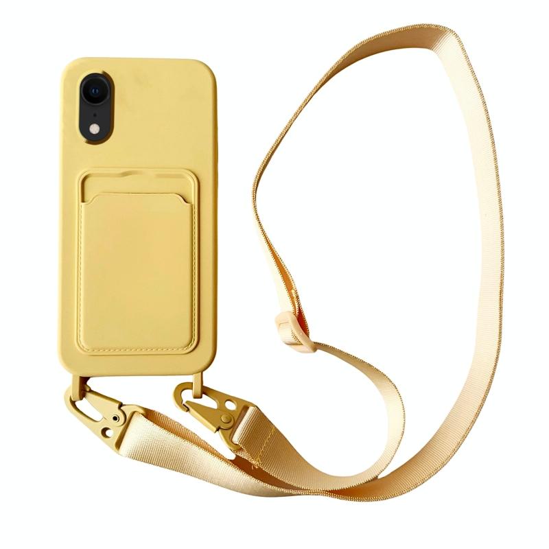 For iPhone XR Card Slot Liquid Silicone Phone Case with Lanyard(Yellow)