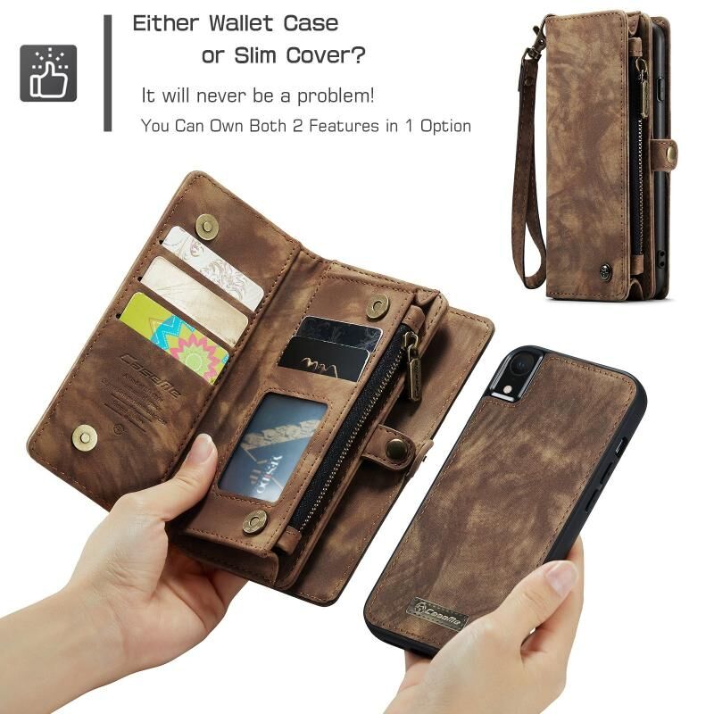 Θήκη για iPhone XR CaseMe, αποσπώμενη, πολυλειτουργική, οριζόντια, δερμάτινη θήκη με υποδοχή για κάρτες, στήριξη, πορτοφόλι με φερμουάρ & κορνίζα φωτογραφιών (Κόκκινη) (CaseMe)