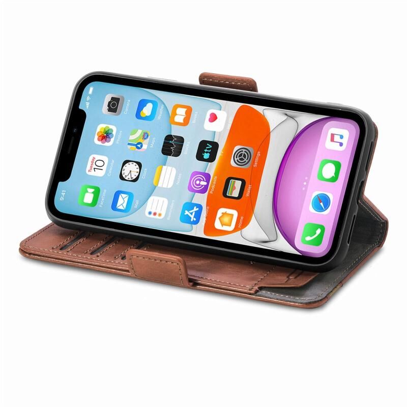 Θήκη για iPhone XR CaseNeo Business Splicing με Διπλή Μαγνητική Αγκράφα, Οριζόντια, από Δερματίνη PU με Θήκη & Θήκες Καρτών & Πορτοφόλι (Καφέ)
