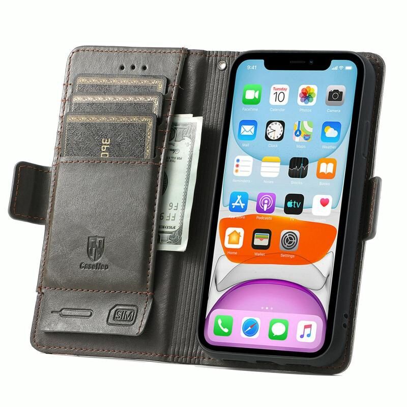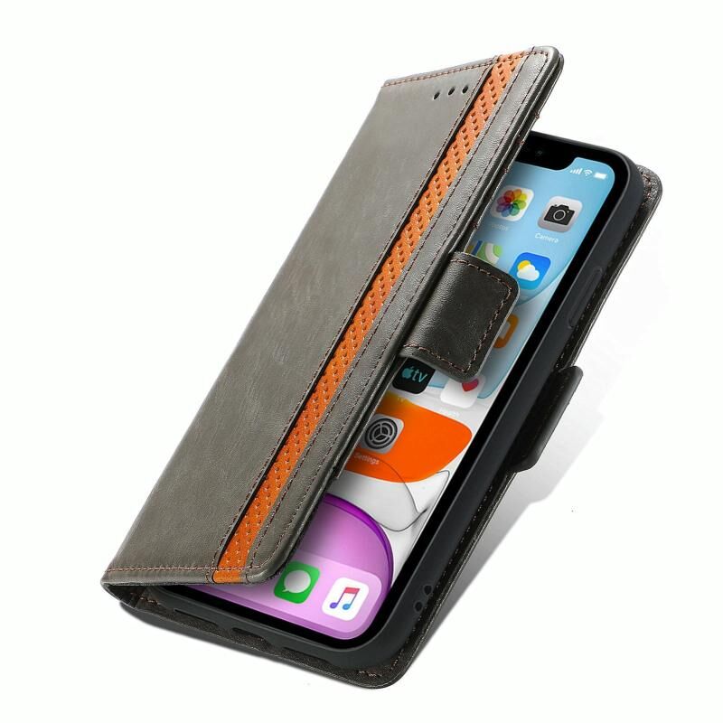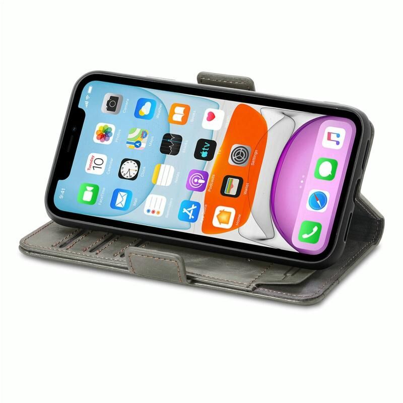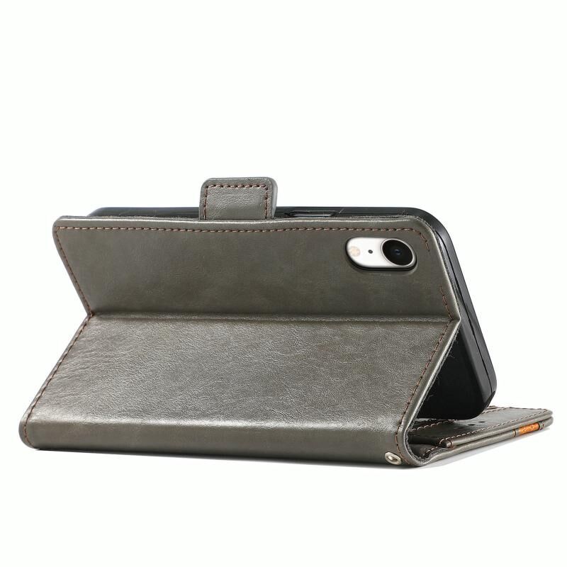 Θήκη για iPhone XR CaseNeo Business Splicing με Διπλή Μαγνητική Αγκράφα, Οριζόντια, από Δερματίνη PU με Θήκη & Θήκες Καρτών & Πορτοφόλι (Γκρι)