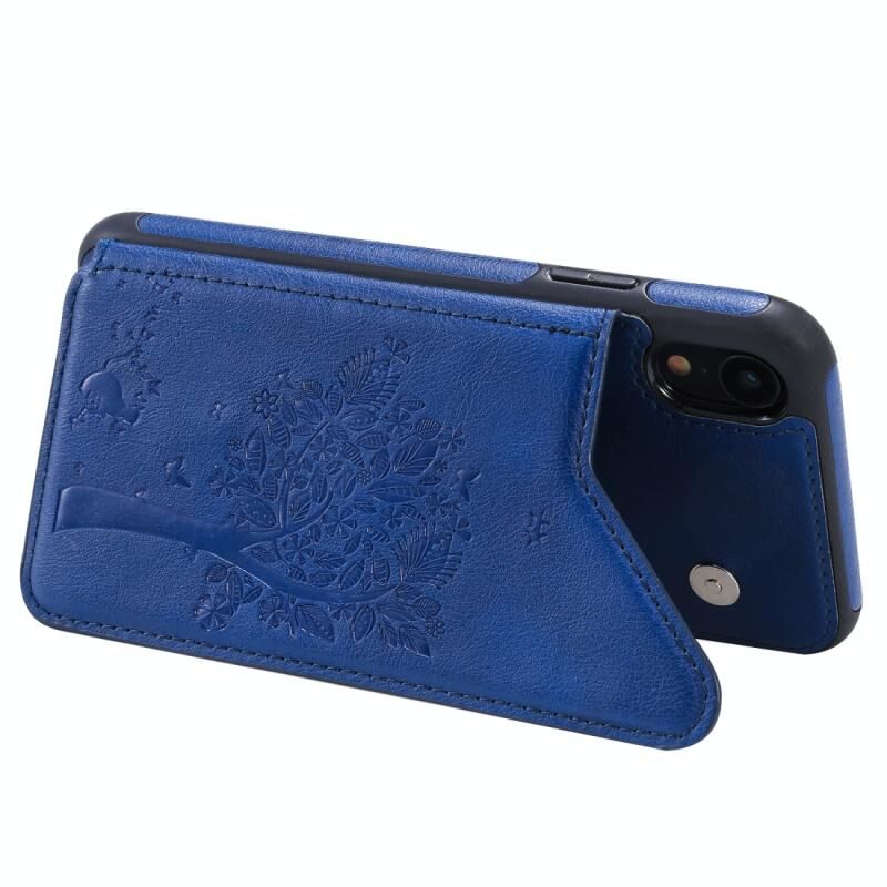 Θήκη προστασίας για iPhone XR με σχέδιο ανάγλυφου γατιού, αντικραδασμική, με θήκες για κάρτες & κορνίζα φωτογραφιών & βάση στήριξης (Μπλε)
