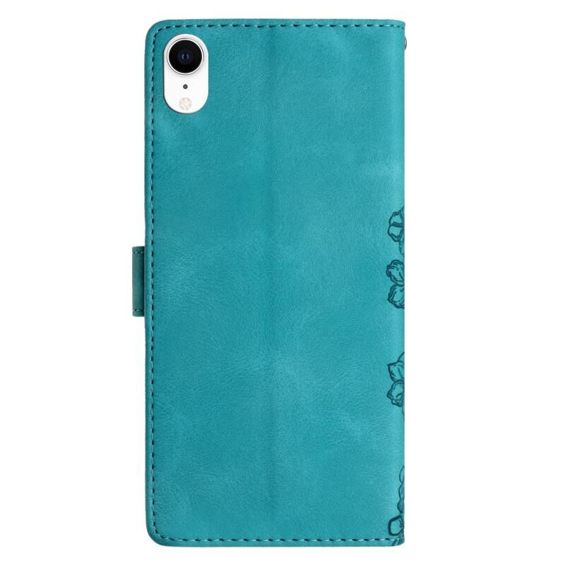 For iPhone XR Cherry Blossom Butterfly Skin Feel Embossed PU Phone Case(Green)