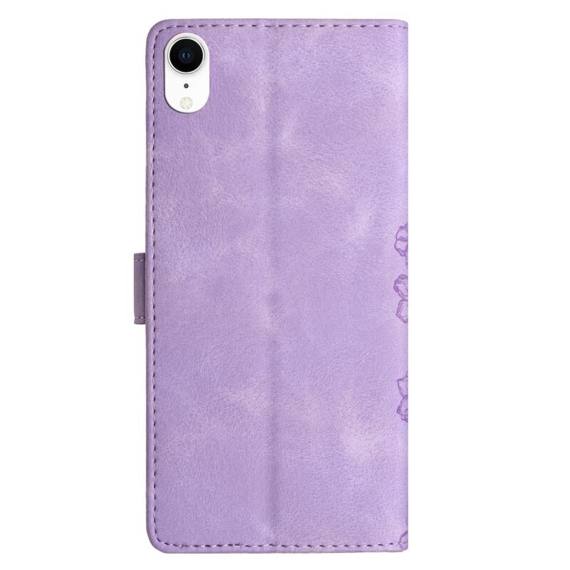 For iPhone XR Cherry Blossom Butterfly Skin Feel Embossed PU Phone Case(Purple)