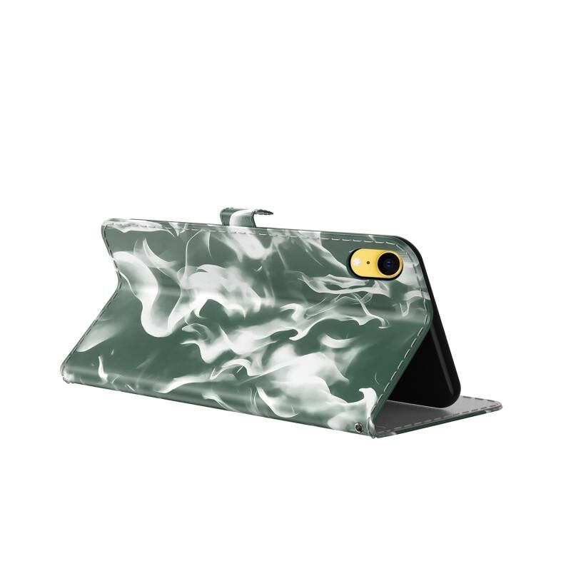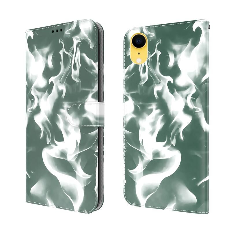 Θήκη δέρματος οριζόντιας αναδίπλωσης για iPhone XR με σχέδιο σύννεφων, θήκη με βάση & υποδοχή κάρτας & πορτοφόλι (Μέντα Πράσινο)