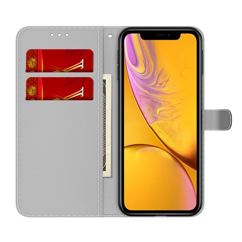 Θήκη δέρματος οριζόντιας αναδίπλωσης για iPhone XR με σχέδιο σύννεφων, θήκη με βάση & υποδοχή κάρτας & πορτοφόλι (Μέντα Πράσινο)