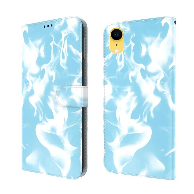 Θήκη δέρματος οριζόντιας αναδίπλωσης για iPhone XR με σχέδιο σύννεφων, θήκη για κάρτες και πορτοφόλι (Μωβ)
