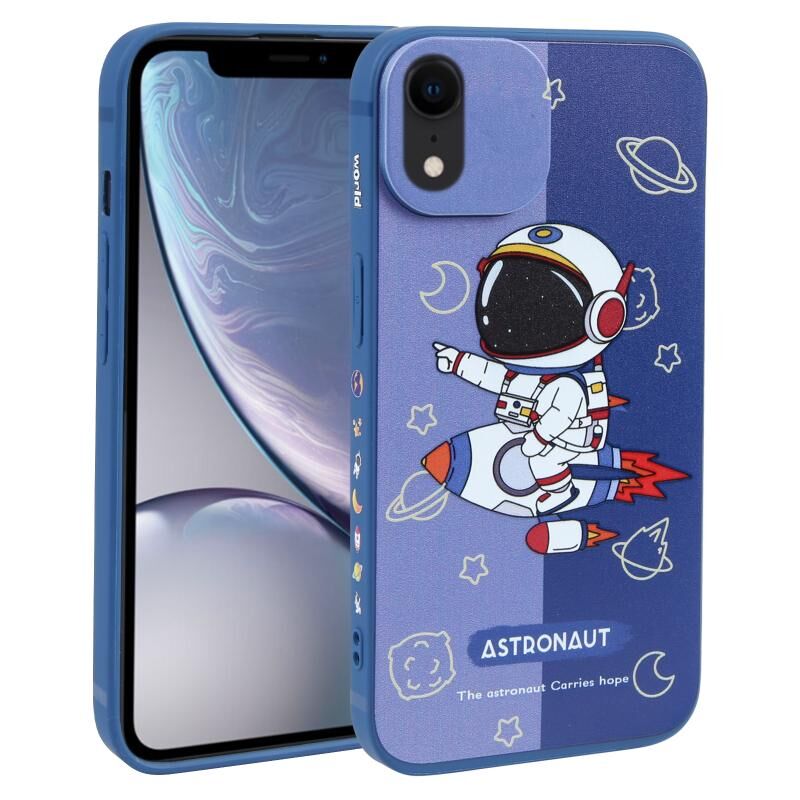 Θήκη τηλεφώνου TPU για iPhone XR με σχέδιο αστροναύτη και αντίθεση χρωμάτων (Μπλε)