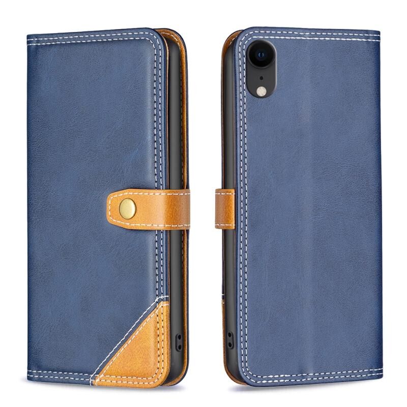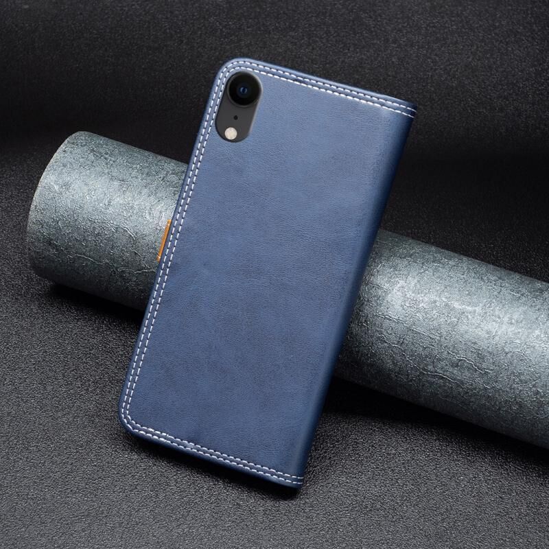 Θήκη δέρματος διπλής ραφής για iPhone XR σε μαύρο χρώμα (Blue)