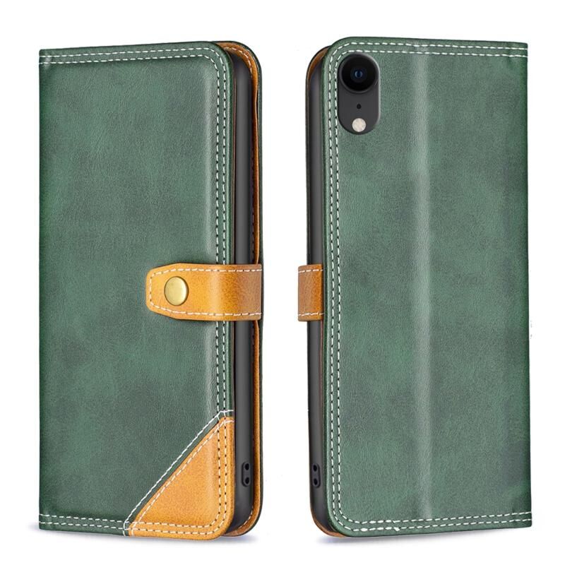 Θήκη δέρματος διπλής ραφής για iPhone XR σε μαύρο χρώμα (Green)