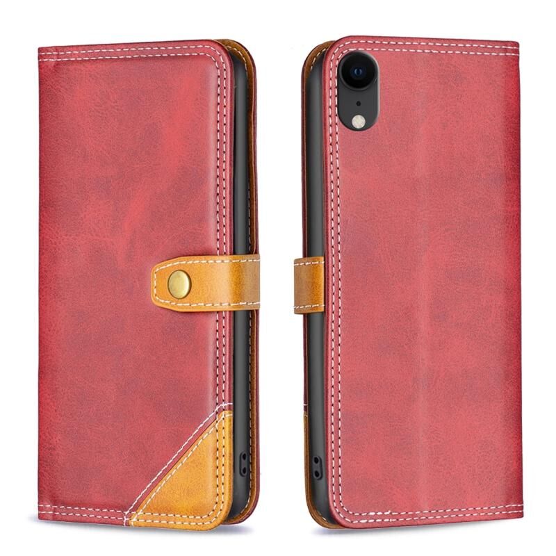 Θήκη δέρματος διπλής ραφής για iPhone XR σε μαύρο χρώμα (Red)