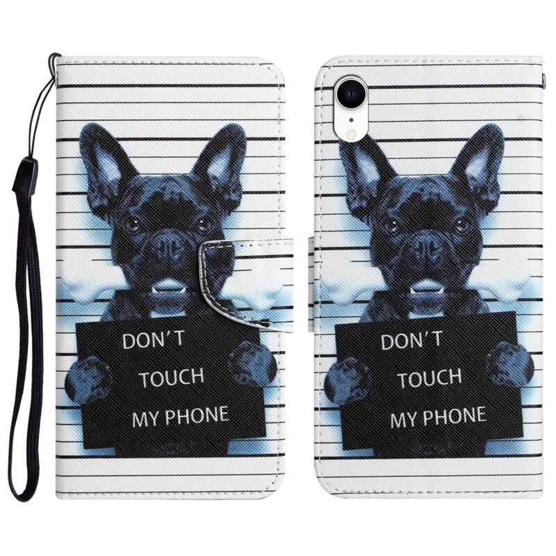 Θήκη τηλεφώνου από δέρμα με σχέδιο για iPhone XR (Μαύρος Σκύλος)