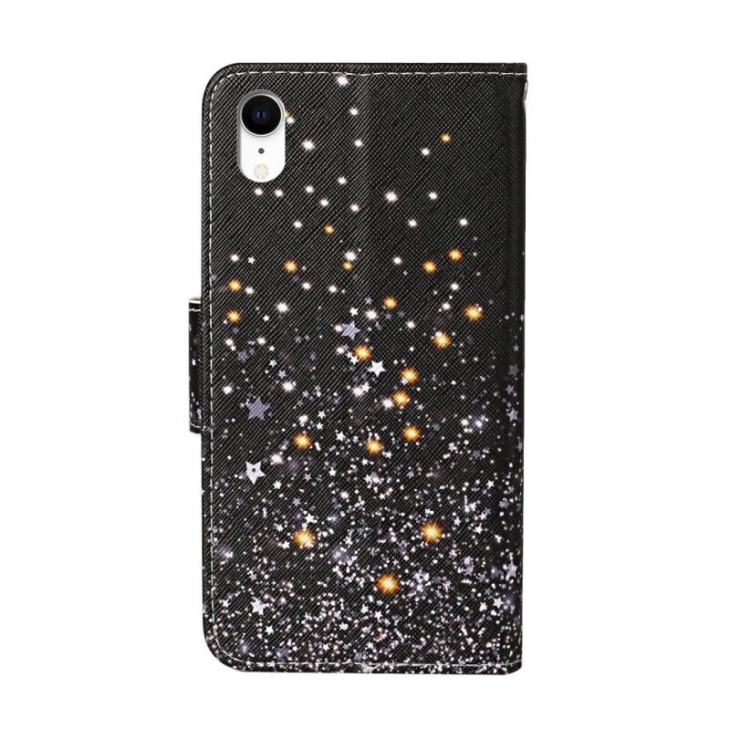 Θήκη δέρματος οριζόντιας αναδίπλωσης με σχέδιο πολύχρωμης ζωγραφικής για iPhone XR με βάση & υποδοχές καρτών & πορτοφόλι (Μαύρο Αστέρι Πέντε Άκρων)