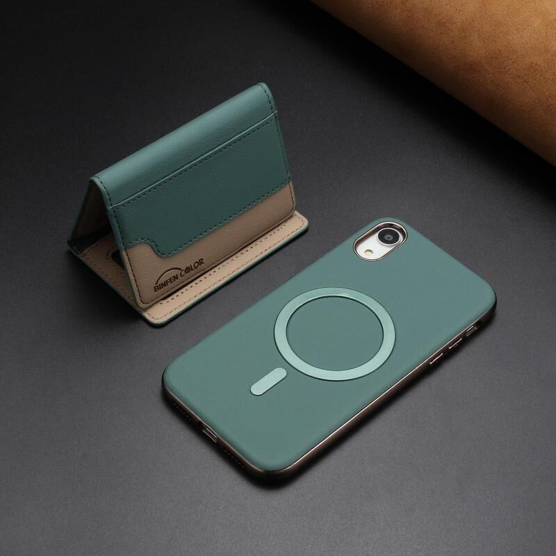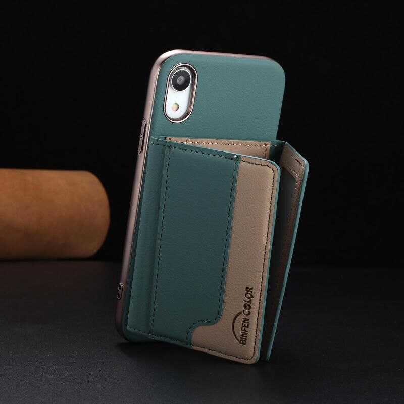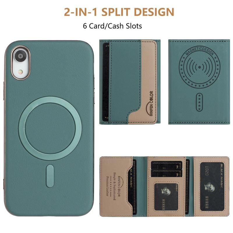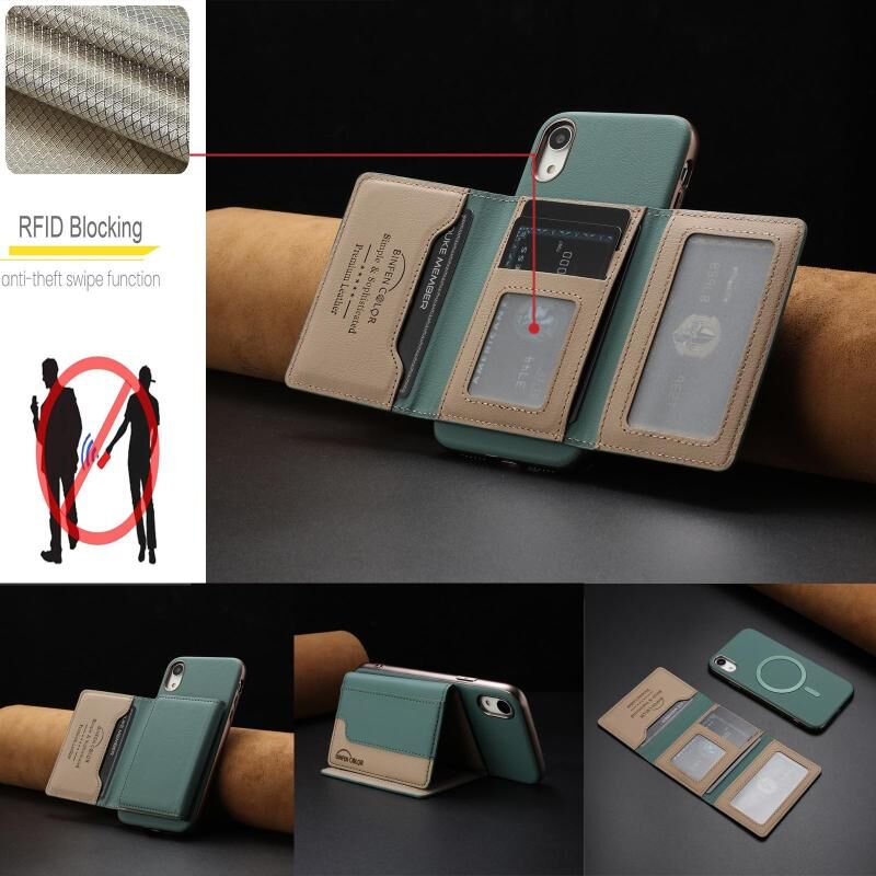 Θήκη τηλεφώνου με μαγνητική κάρτα οριζόντια, σε χρώμα που ταιριάζει με το iPhone XR, με προστασία RFID και MagSafe (πράσινο)