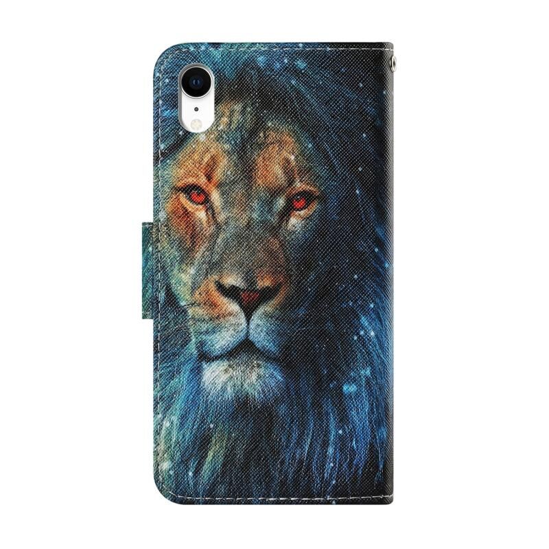 Θήκη για iPhone XR με έγχρωμο σχέδιο, οριζόντιο άνοιγμα, από δερματίνη PU με βάση, θήκες για κάρτες, πορτοφόλι και κορδόνι (Λιοντάρι)