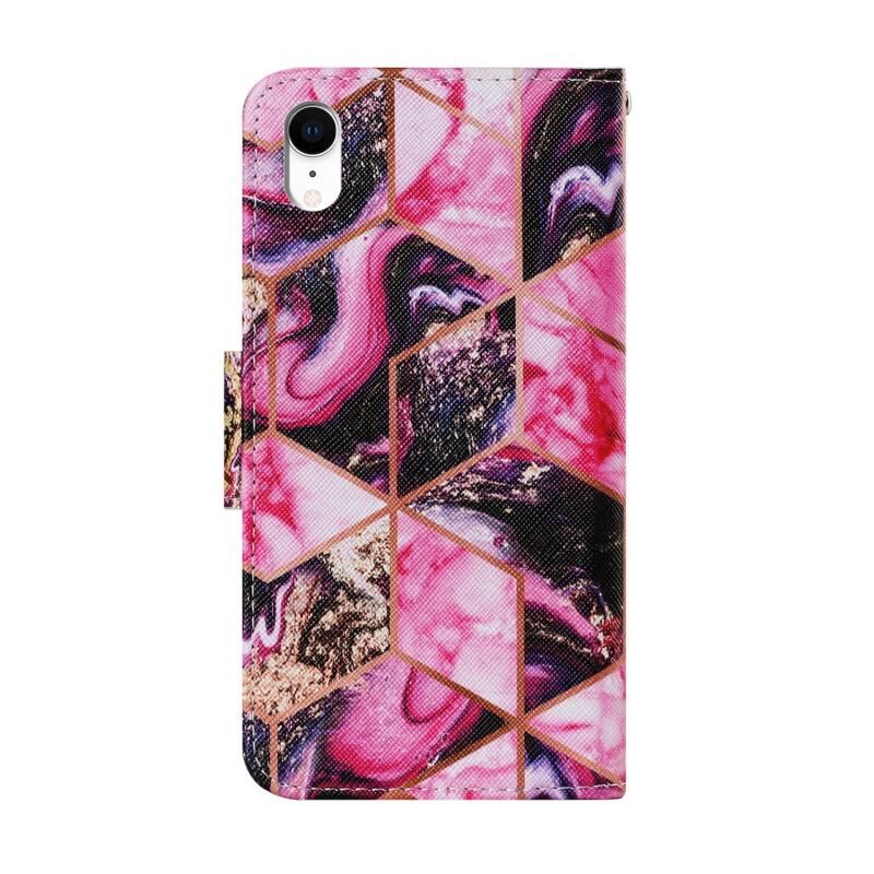 Θήκη για iPhone XR με έγχρωμο σχέδιο, οριζόντια αναδίπλωση από δερματίνη PU με βάση στήριξης, θήκες για κάρτες, πορτοφόλι & λουρί (Μαύρο Μάρμαρο)