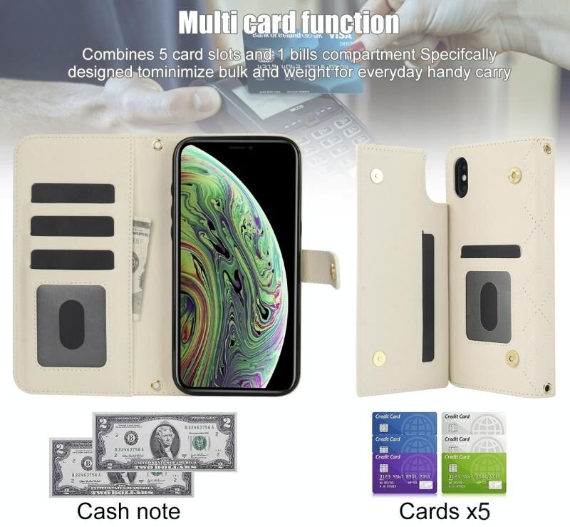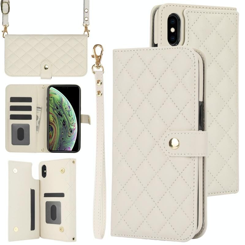 Θήκη τηλεφώνου για iPhone XR, πολυλειτουργική, δερμάτινη με ρόμβους, σε σταυρωτό στυλ (Λευκό)