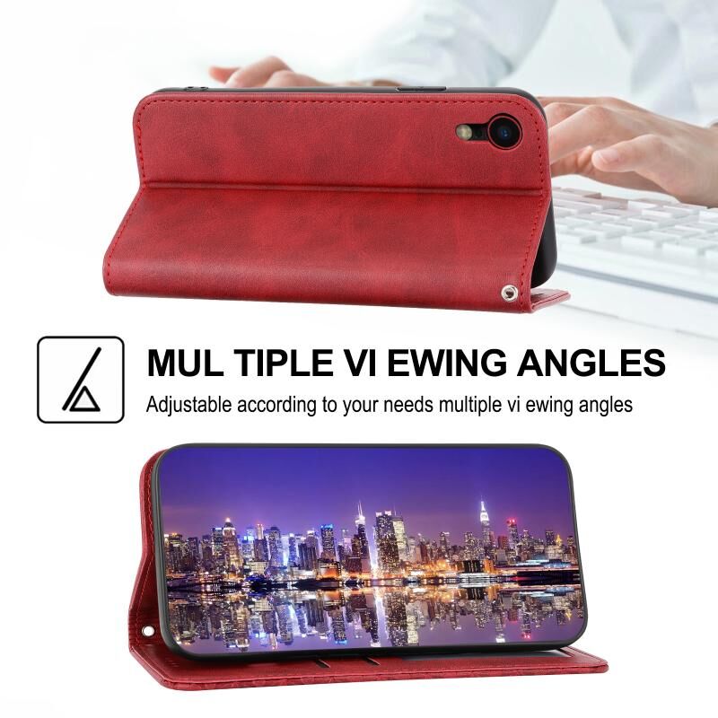 Θήκη τηλεφώνου από δέρμα με μαγνητικό κλείσιμο, υφή μοσχαρίσιου δέρματος σε κυβικό πλέγμα για iPhone XR (Μαύρο)