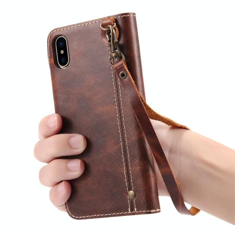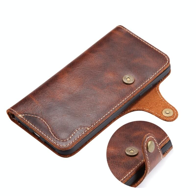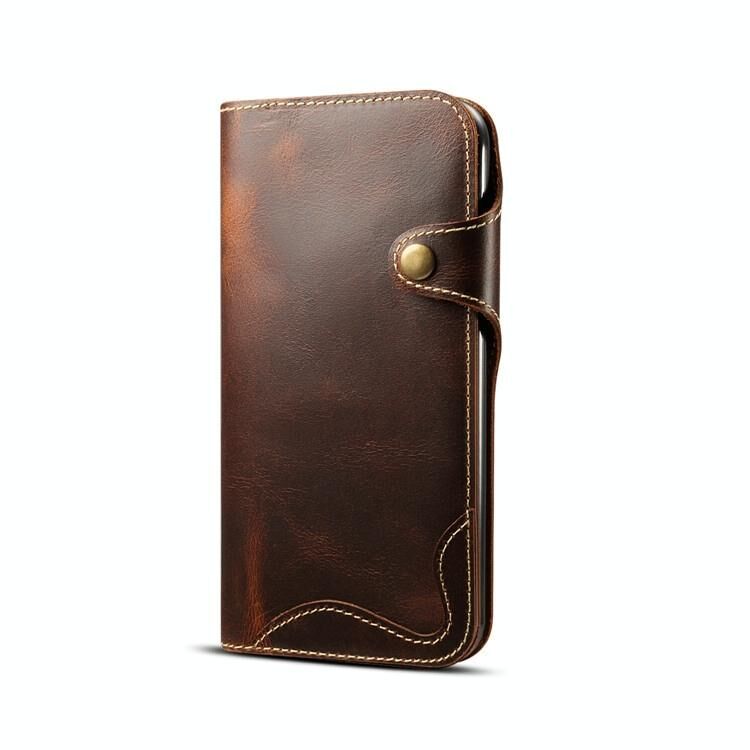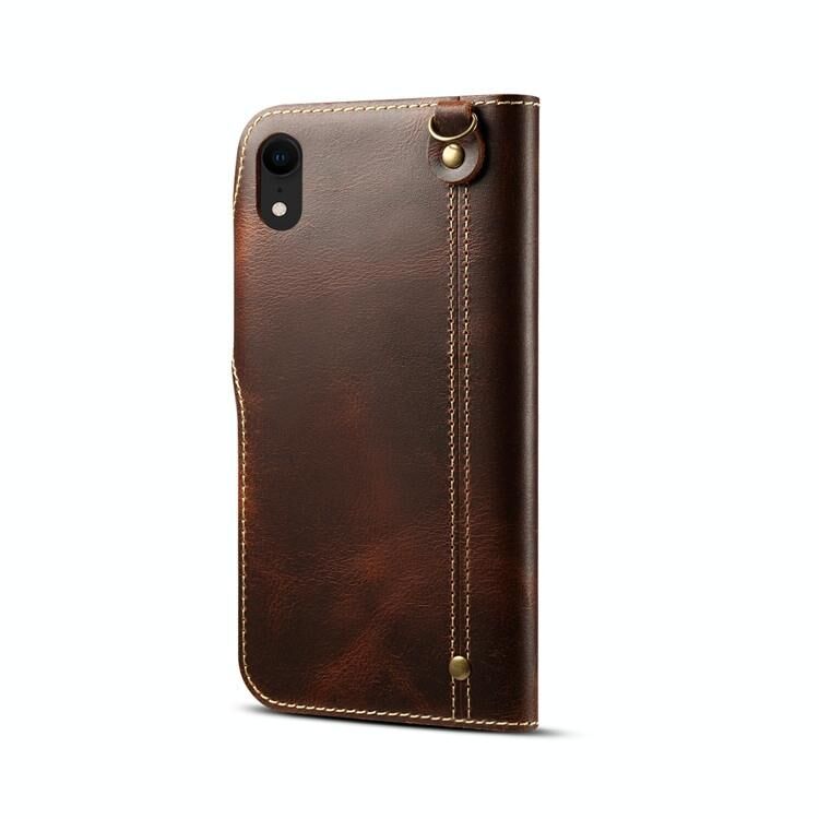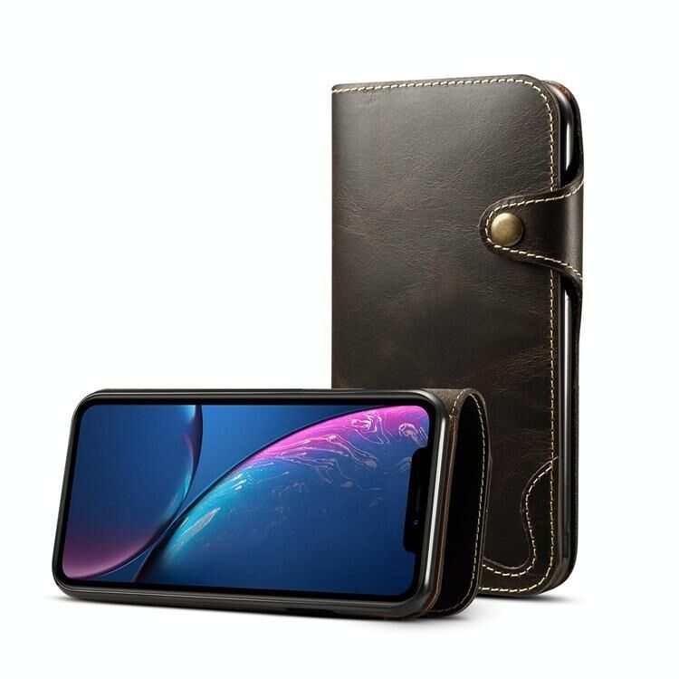 For iPhone XR Denior Oil Wax Cowhide Magnetic Button Horizontal Flip Leather Case with Card Slots & Wallet(Brown) (Denior)