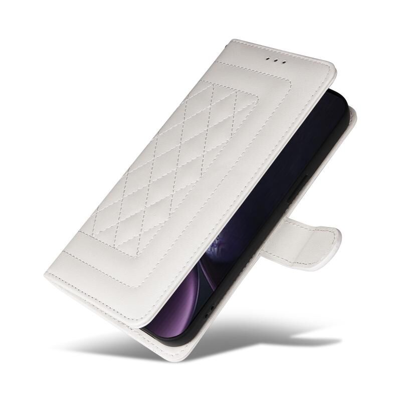 Θήκη για iPhone XR, Δερμάτινη με σχέδιο Διαμαντόπλεγμα, Flip (Λευκό)