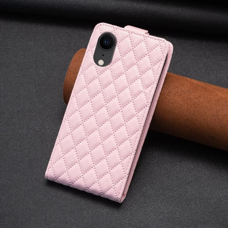 Θήκη τηλεφώνου από δέρμα με κάθετη αναδίπλωση και σχέδιο διαμαντένιας πλέξης για iPhone XR (Σκούρο Μωβ)