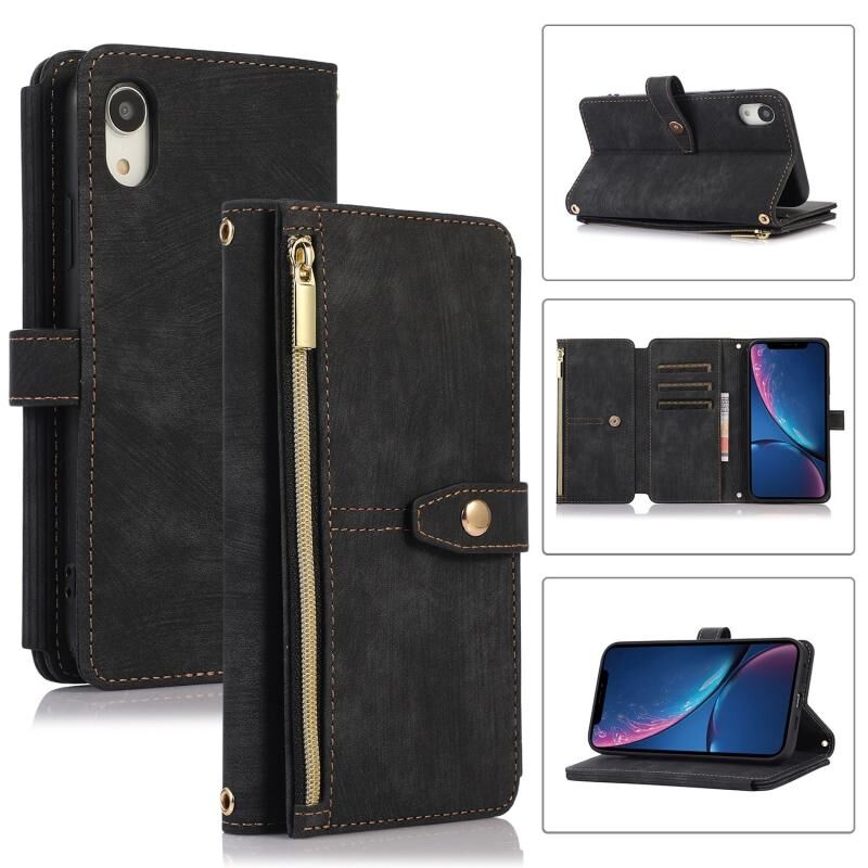 For iPhone XR Dream 9-Card Wallet Zipper Bag Leather Phone Case(Black)