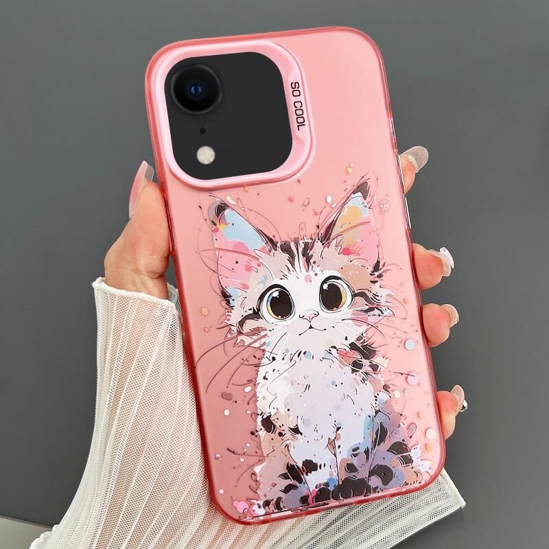 Θήκη τηλεφώνου για iPhone XR, Διπλής Όψης IMD με σχέδια Animal Graffiti από TPU + PC (Κομψή Γάτα)