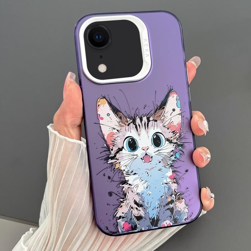 Θήκη τηλεφώνου για iPhone XR, Διπλής Όψης IMD, με σχέδια Animal Graffiti από TPU + PC (Έκπληκτος Γάτος)