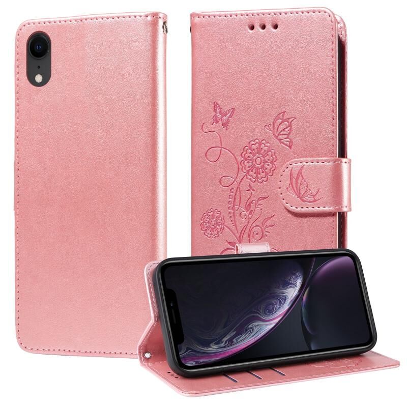 Θήκη τηλεφώνου από δέρμα με ανάγλυφα λουλούδια και πεταλούδες για iPhone XR (Μωβ)