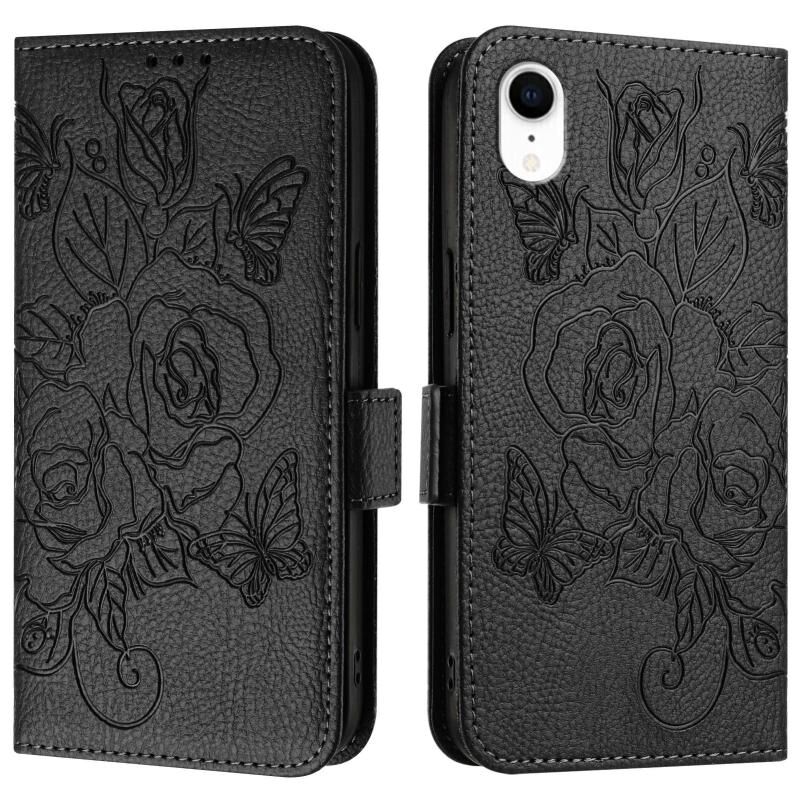 Θήκη τηλεφώνου δερμάτινη με ανάγλυφο σχέδιο τριαντάφυλλου και προστασία RFID κατά της κλοπής για iPhone XR (Κόκκινη)