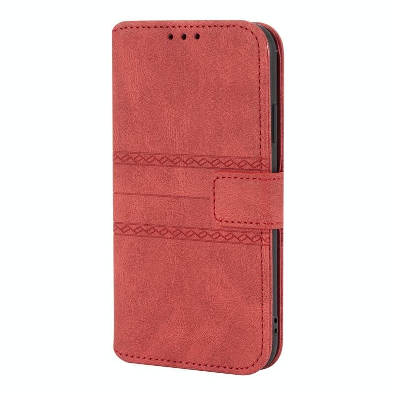 Θήκη δέρματος οριζόντιας αναδίπλωσης για iPhone XR με ανάγλυφο ριγέ μαγνητικό κούμπωμα, PU + TPU, με βάση, θήκη καρτών, πορτοφόλι, κορνίζα φωτογραφιών & λουρί (Κόκκινο)
