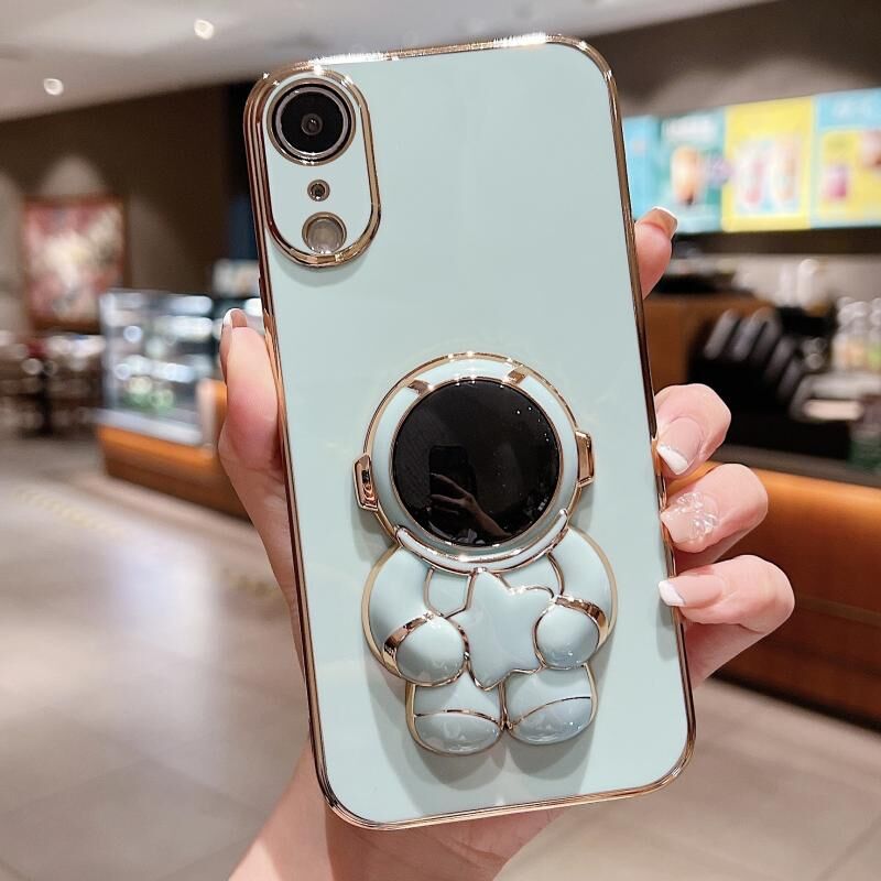 Θήκη κινητού τηλεφώνου για iPhone XR με σχέδιο αστροναύτη και ηλεκτρολυτική επίστρωση "Embrace Stars" (Πράσινο)