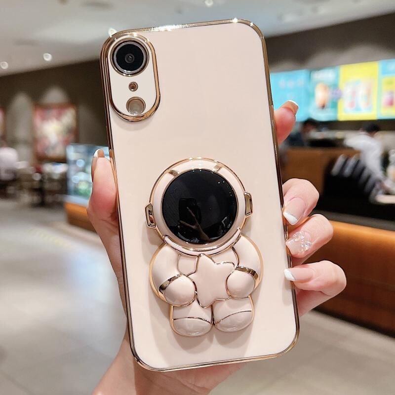 Θήκη τηλεφώνου για iPhone XR, με ηλεκτρολυτική επίστρωση, αστροναύτη και σχέδιο αστέρων (Ροζ)