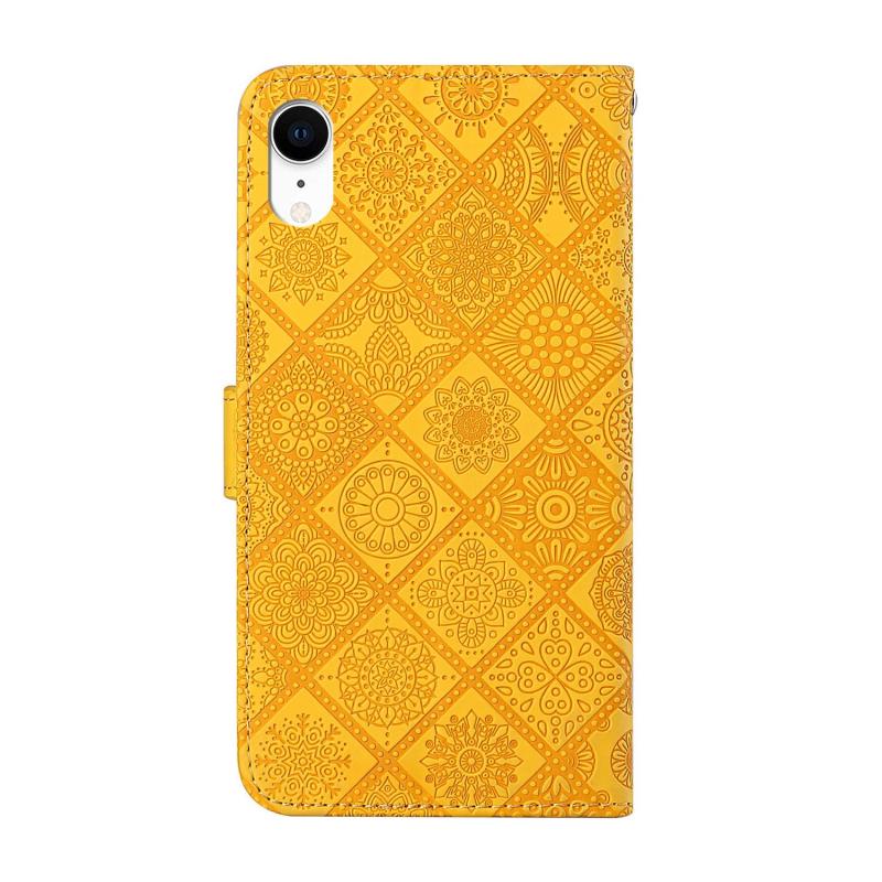 Θήκη για iPhone XR σε εθνοτικό στυλ με ανάγλυφο σχέδιο, οριζόντια, από δέρμα με βάση στήριξης, θήκες για κάρτες, πορτοφόλι & λουρί (Κίτρινο)