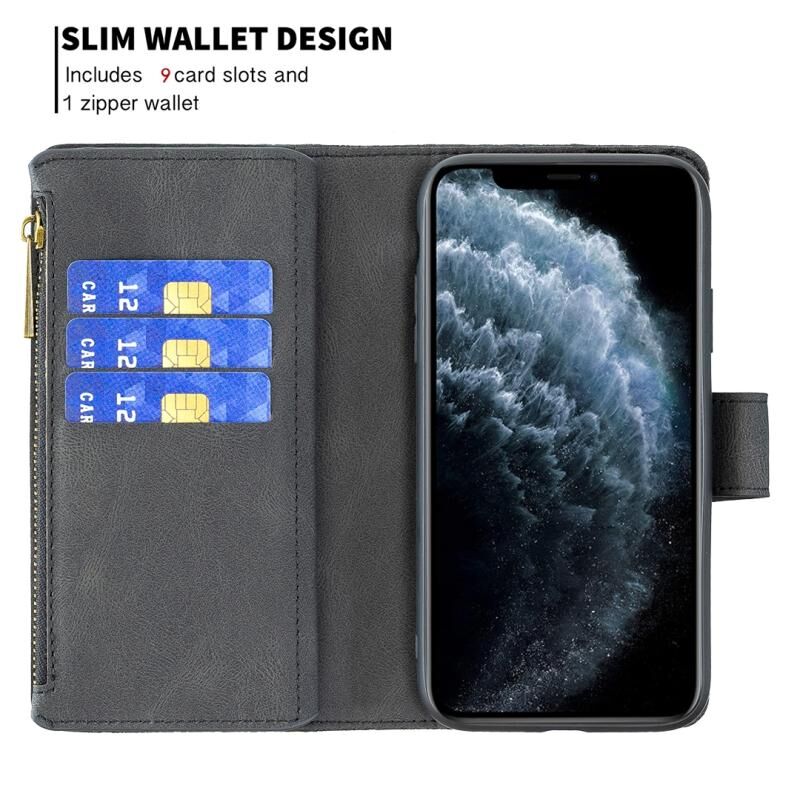 Θήκη για iPhone XR με ανάγλυφο σχέδιο πεταλούδας, οριζόντια, δερμάτινη με φερμουάρ, με βάση & θήκες για κάρτες & πορτοφόλι (Μαύρο)