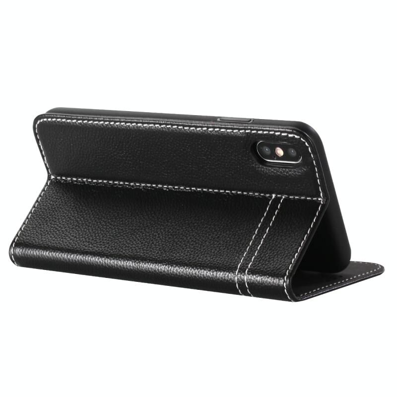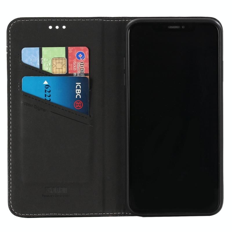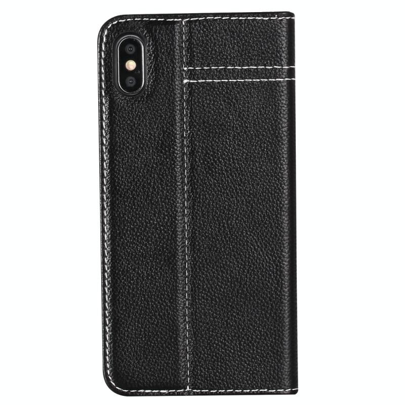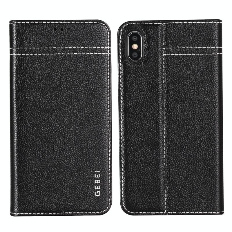 For iPhone XR GEBEI Top-grain Leather Horizontal Flip Protective Case with Holder & Card Slots(Black) (GEBEI)