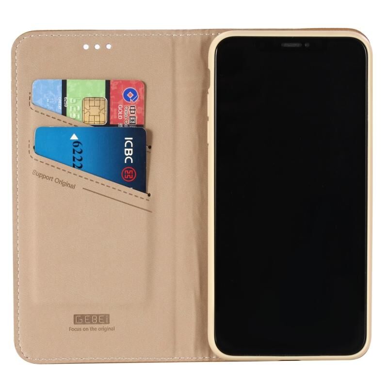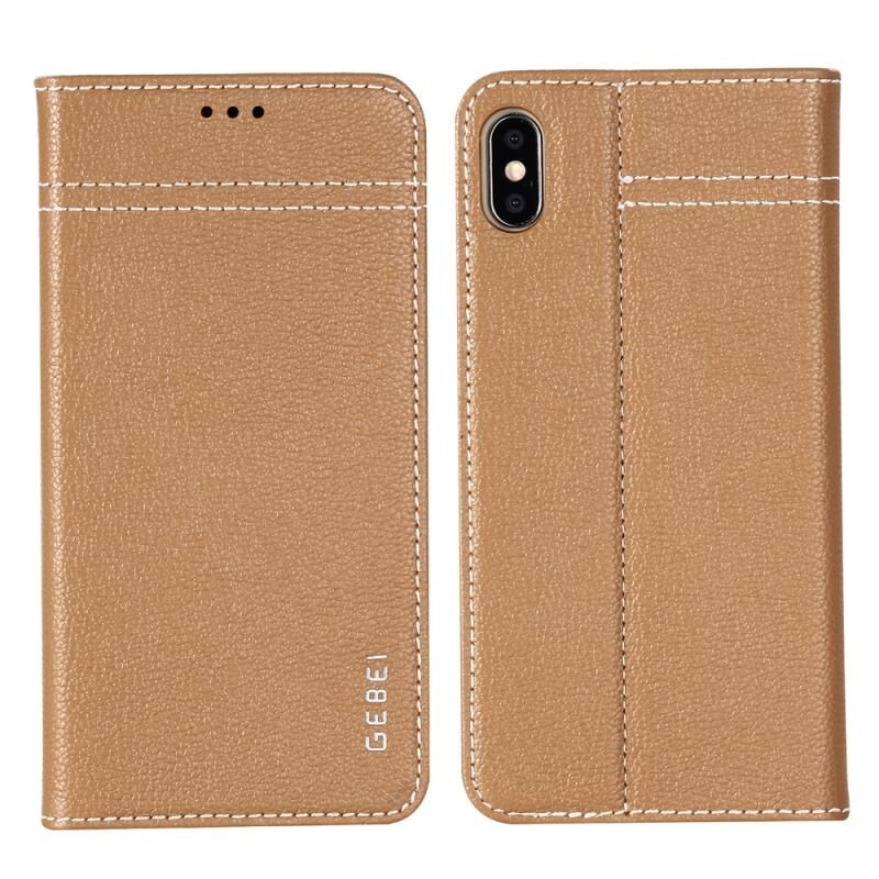 For iPhone XR GEBEI Top-grain Leather Horizontal Flip Protective Case with Holder & Card Slots(Khaki) (GEBEI)