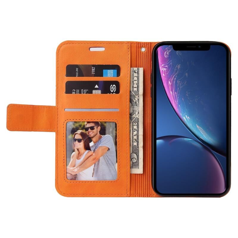 3. Θήκη πορτοφολιού με κάρτες: Συνδυασμός πορτοφολιού και θήκης κινητού τηλεφώνου, με υποδοχές για κάρτες ταυτότητας και πιστωτικές κάρτες και κορνίζα φωτογραφιών, μπορεί να χρησιμοποιηθεί ως πορτοφόλι για να κρατάει πολλές πιστωτικές κάρτες, μετρητά, ταυτότητα και χρήματα, φωτογραφίες.