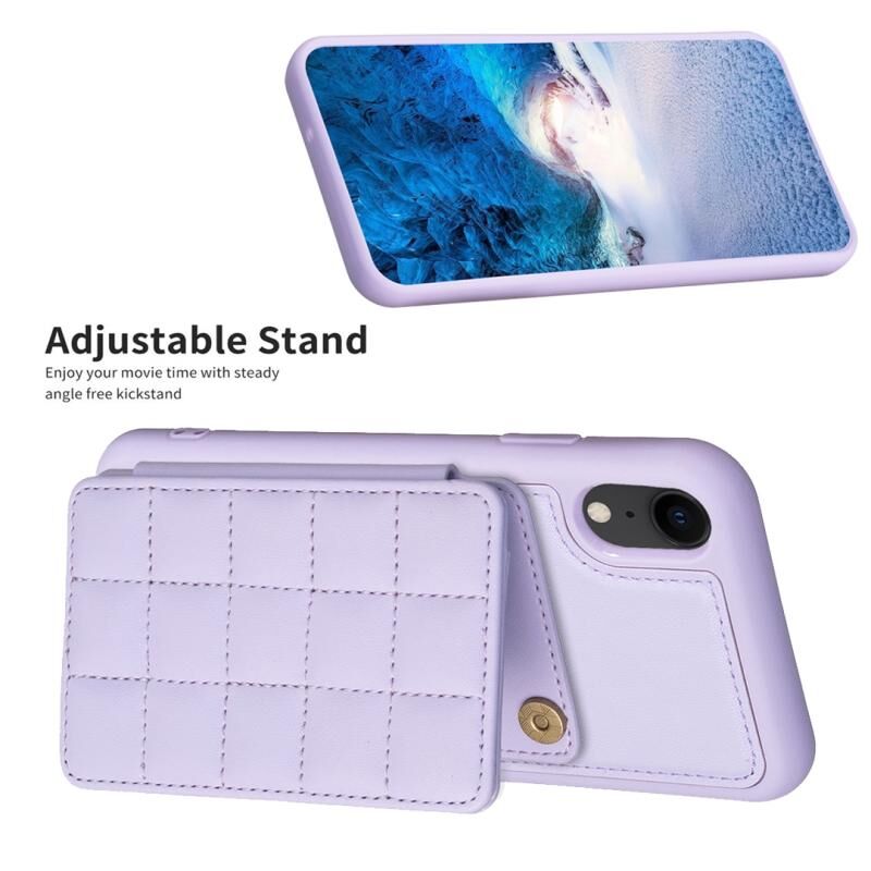 For iPhone XR Grid Card Slot Holder Phone Case(Light Purple)