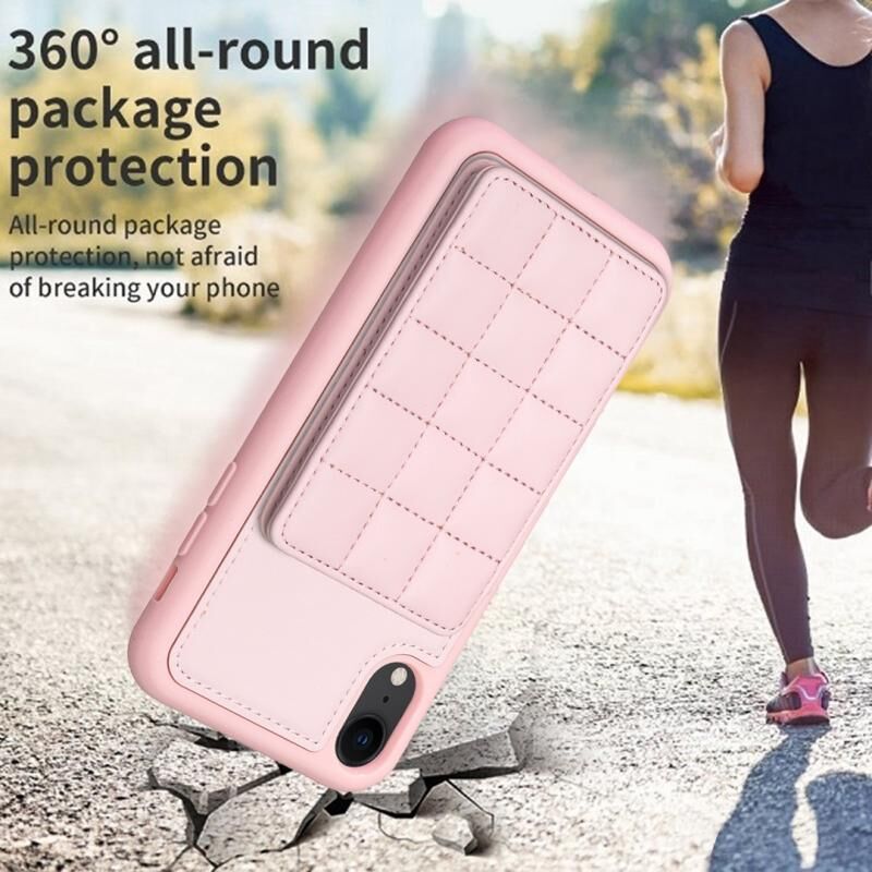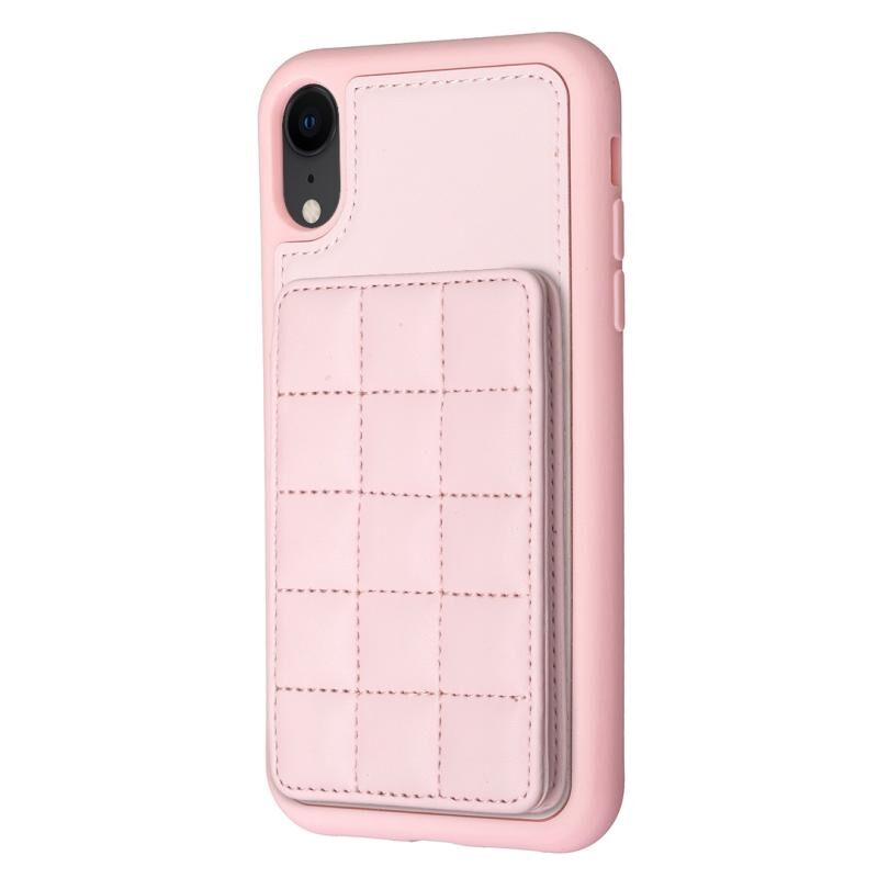 For iPhone XR Grid Card Slot Holder Phone Case(Pink)