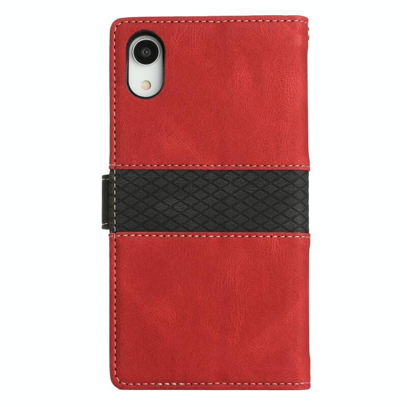 Θήκη τηλεφώνου από δέρμα με ραφή πλέγματος για iPhone XR με κορδόνι (Μπλε)