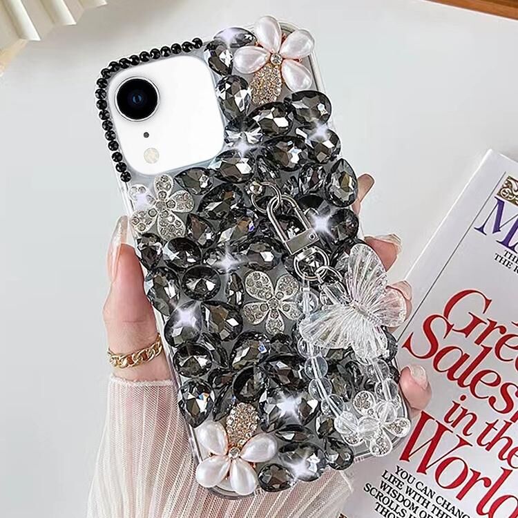 For iPhone XR Handmade Butterfly Diamond Inlay PC Phone Case(Black)