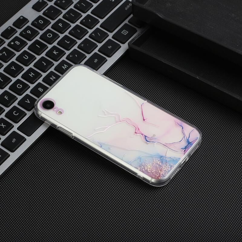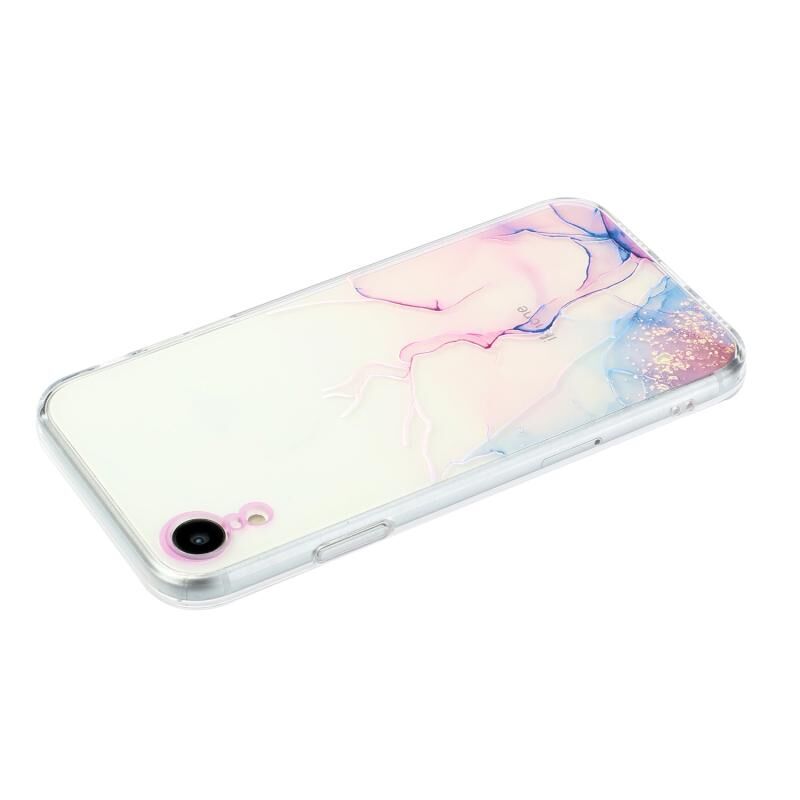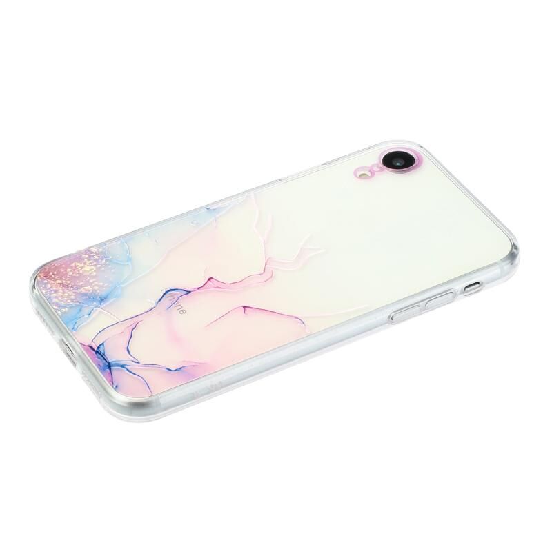 Θήκη προστασίας TPU με κοίλο σχέδιο μαρμάρου για iPhone XR, με ευθείες άκρες και λεπτές οπές (Κίτρινο-Μπλε)