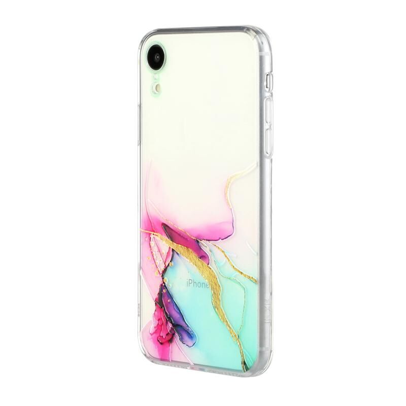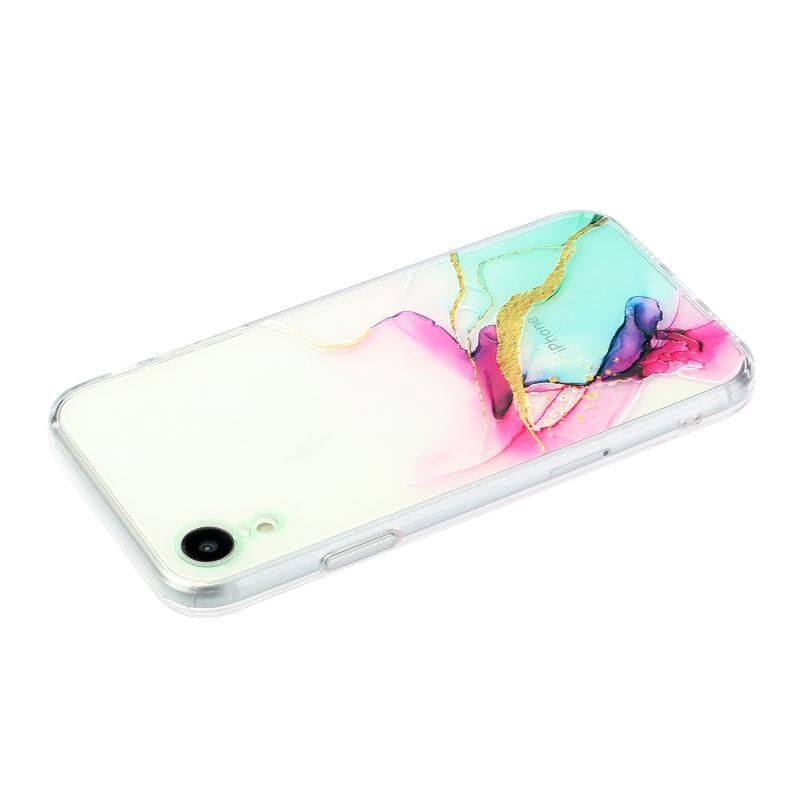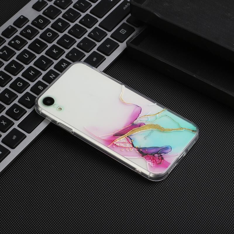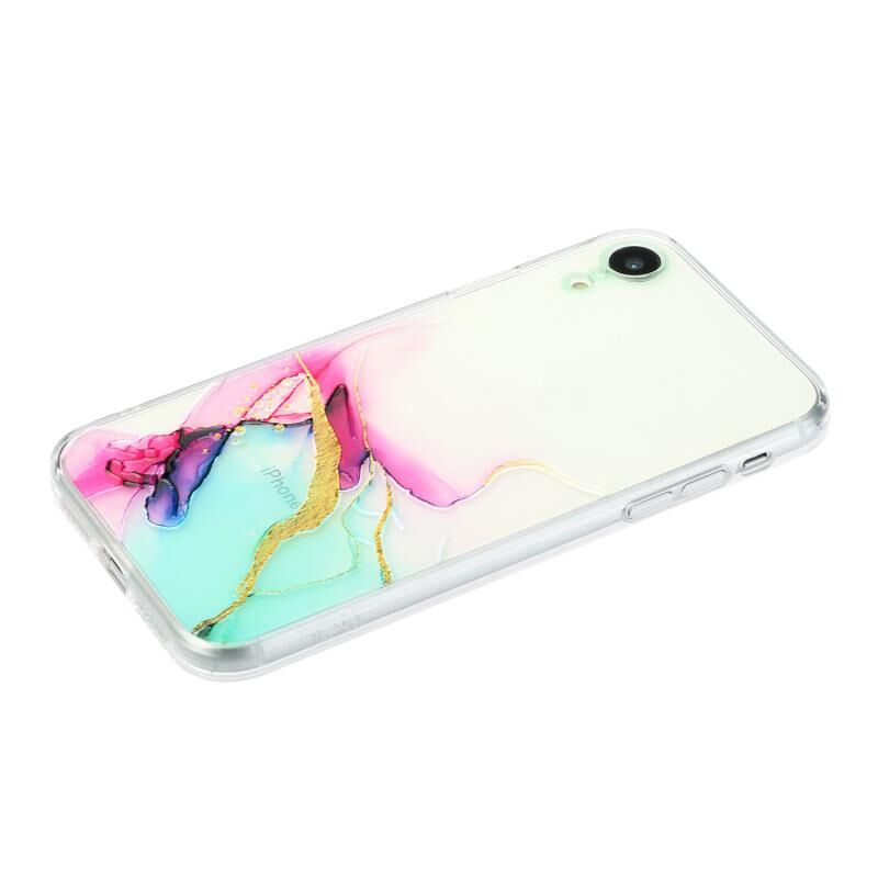 Θήκη προστασίας TPU με κοίλο σχέδιο μαρμάρου για iPhone XR, με ευθείες άκρες και λεπτές οπές (Κίτρινο-Μπλε)