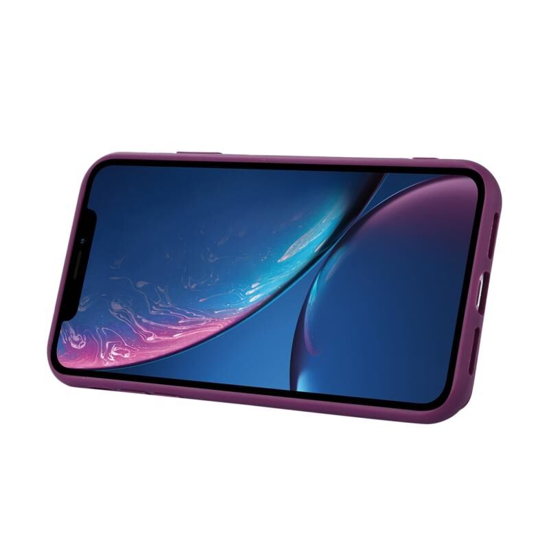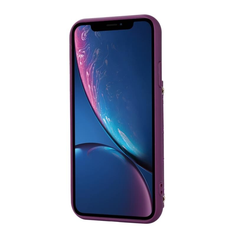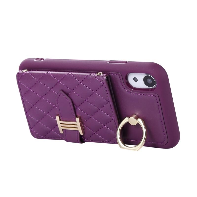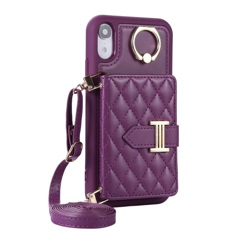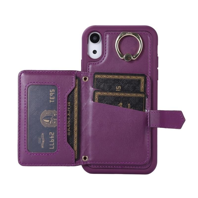 For iPhone XR Horizontal Card Bag Ring Holder Phone Case with Dual Lanyard(Purple)