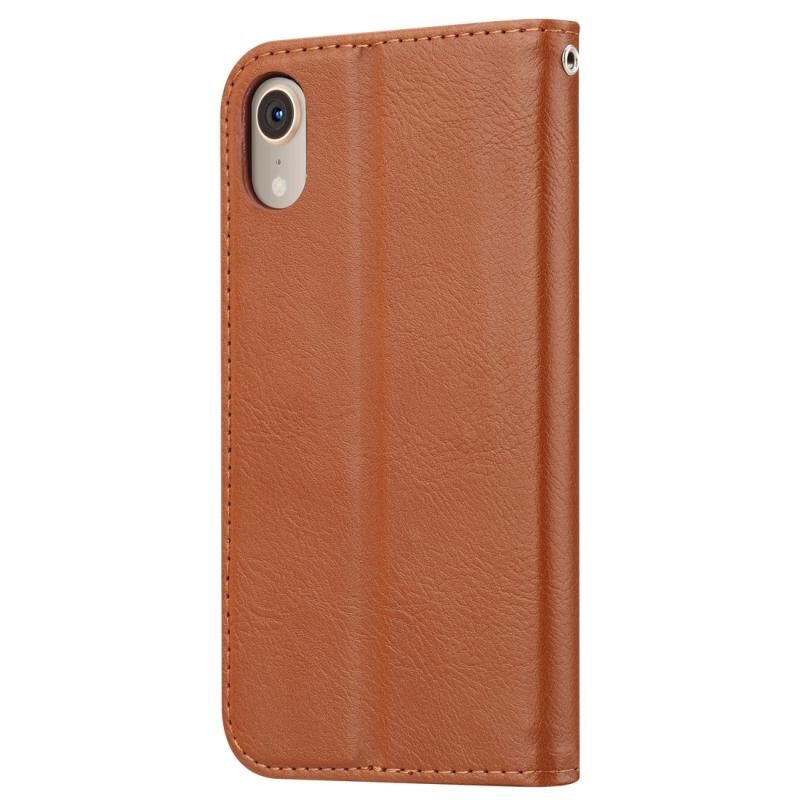 Θήκη για iPhone XR με υφή ζαμσάς, οριζόντια, από δέρμα με κορνίζα φωτογραφίας & βάση στήριξης & θήκες για κάρτες & πορτοφόλι (Κόκκινο)