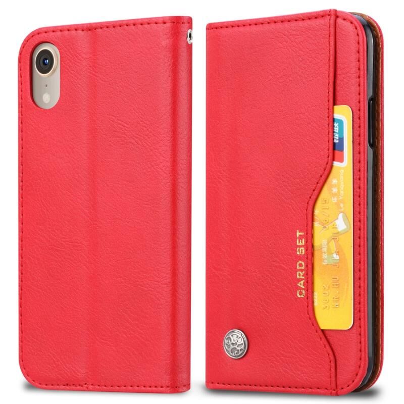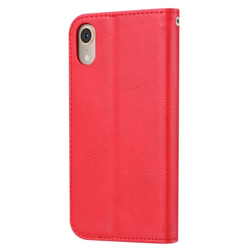 Θήκη για iPhone XR με υφή ζαμσάς, οριζόντια, από δέρμα με κορνίζα φωτογραφίας & βάση στήριξης & θήκες για κάρτες & πορτοφόλι (Κόκκινο)